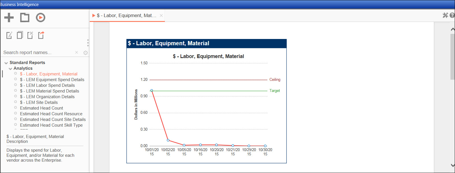From the Business Intelligence screen, click the analytic report to highlight the report name in red.
